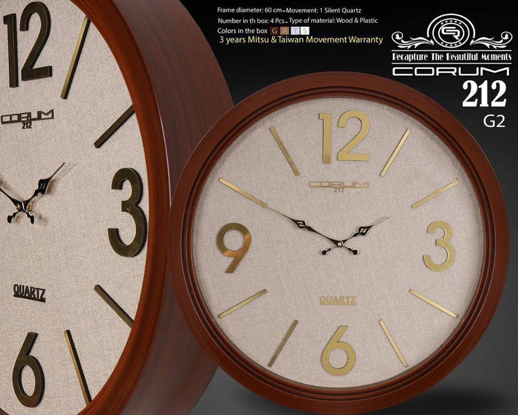 🕒 ساعت دیواری کوروم مدل ۲-۲۱۲ (عدد چهار شماره) – ظرافت، دقت و طراحی خاص
