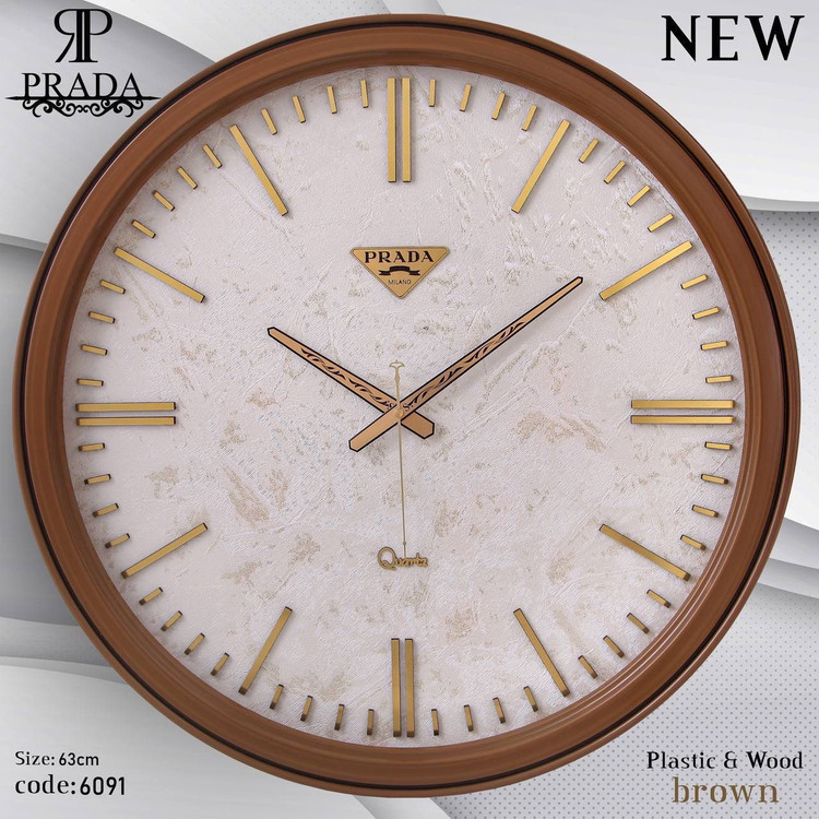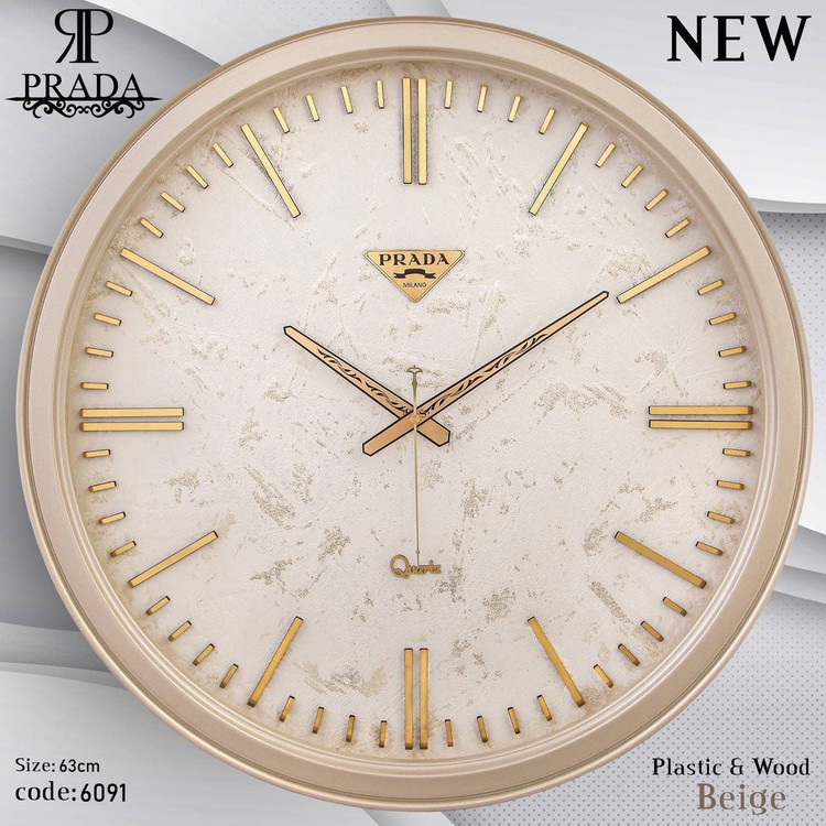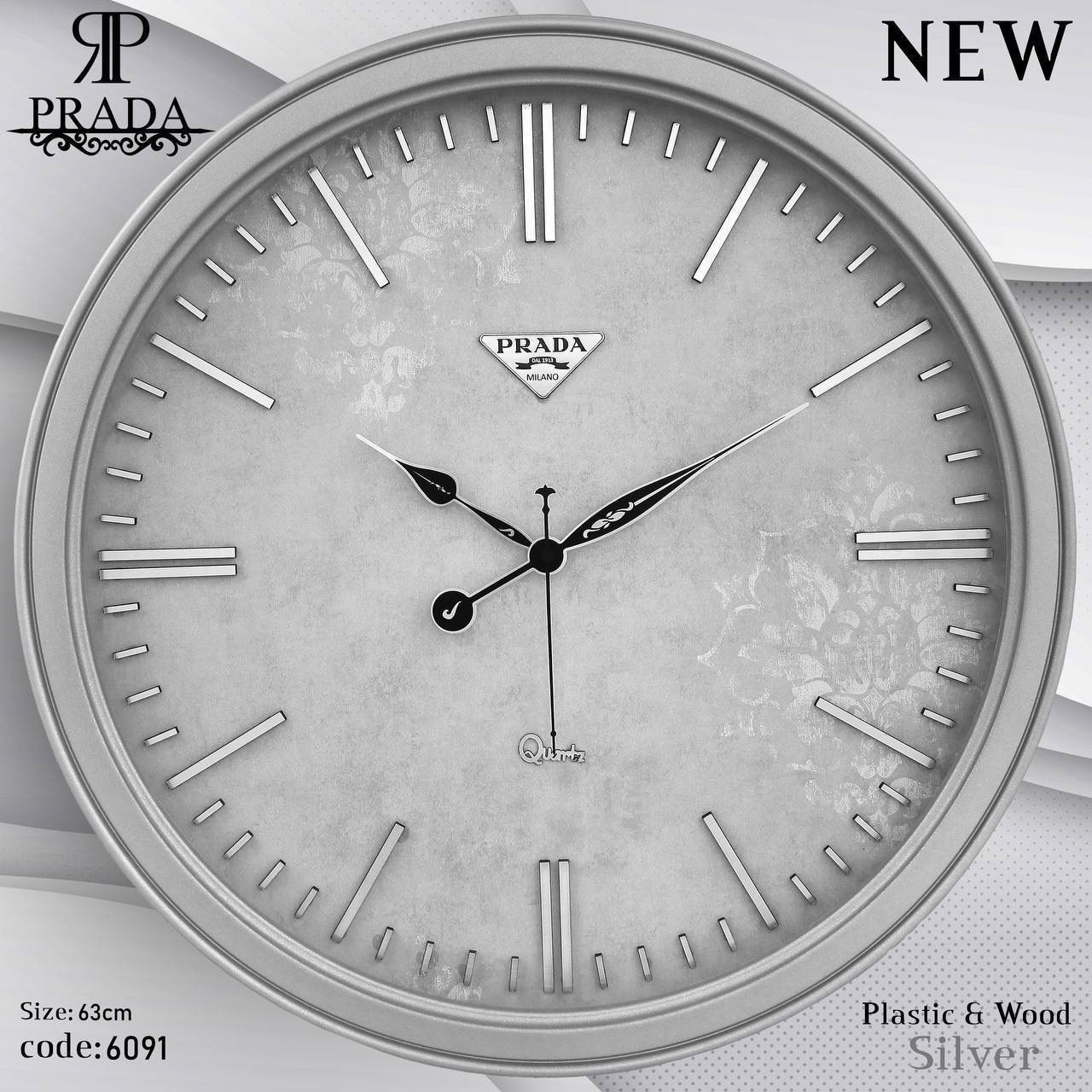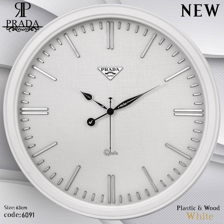 🕰️ ساعت دیواری پرادا (PRADA) مدل 6091 | طراحی مدرن با بدنه پلاستیکی و صفحه شاین اکلیلی
