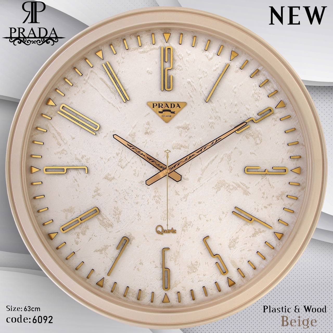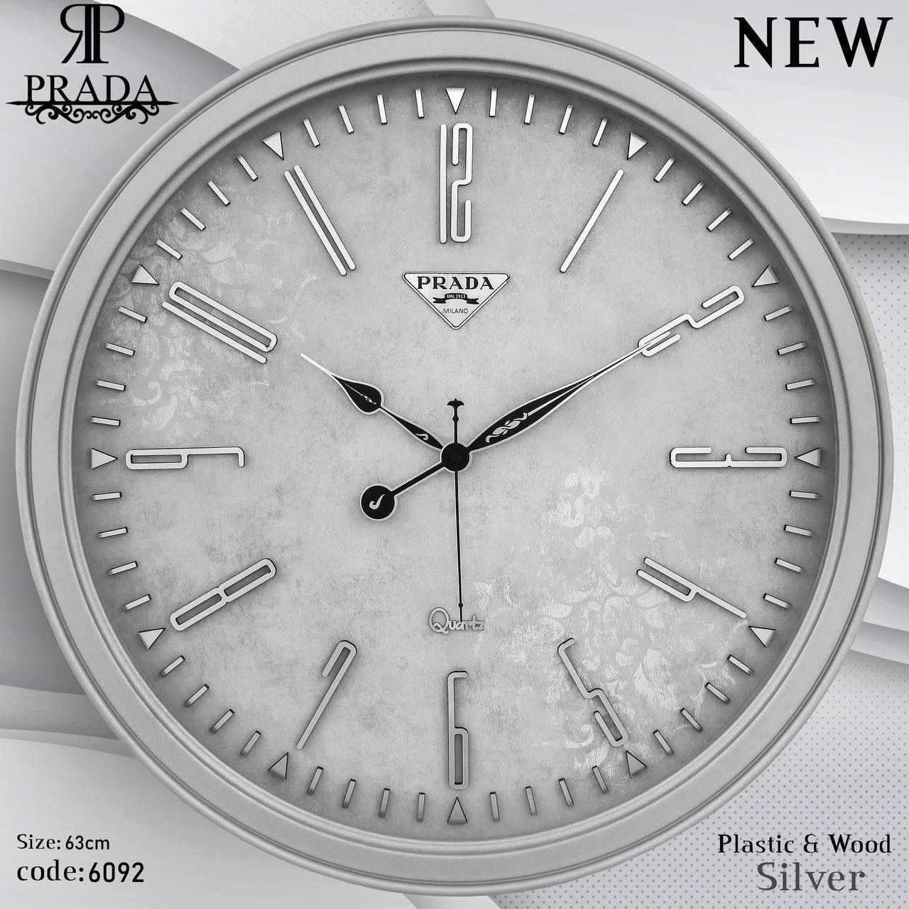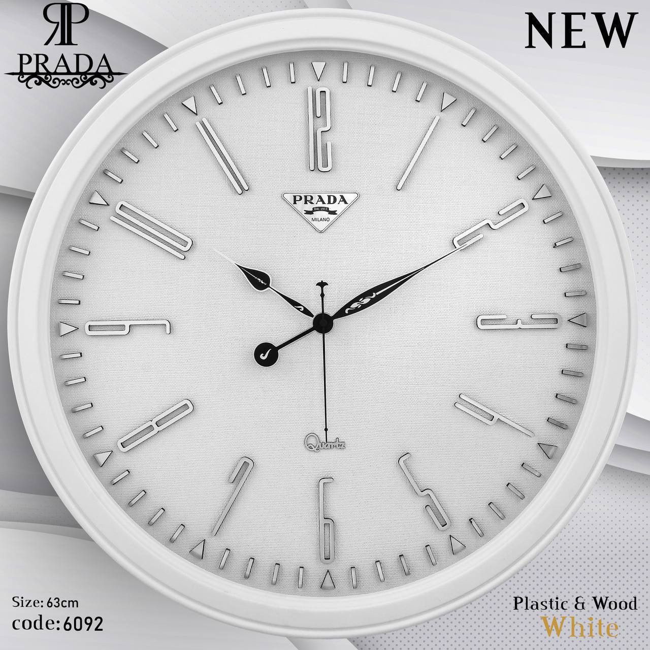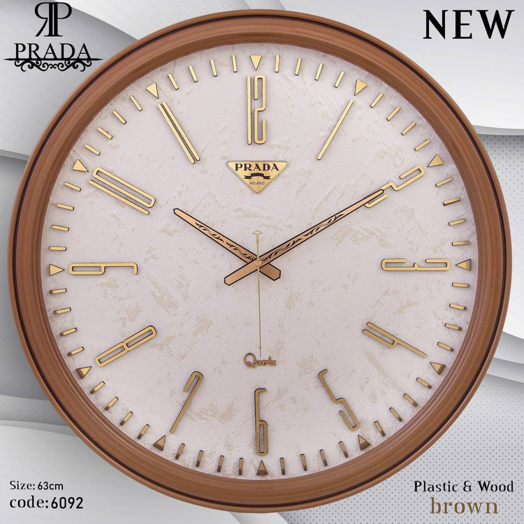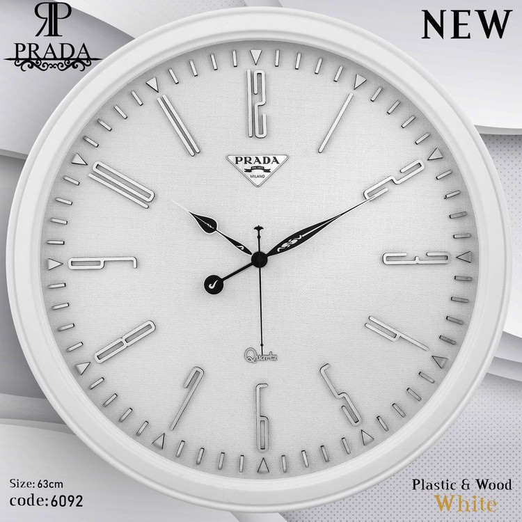 🕰️ ساعت دیواری پرادا (PRADA) مدل 6092 | طراحی مدرن با بدنه پلاستیکی و صفحه شاین اکلیلی