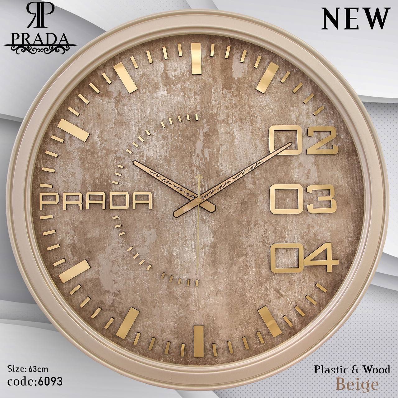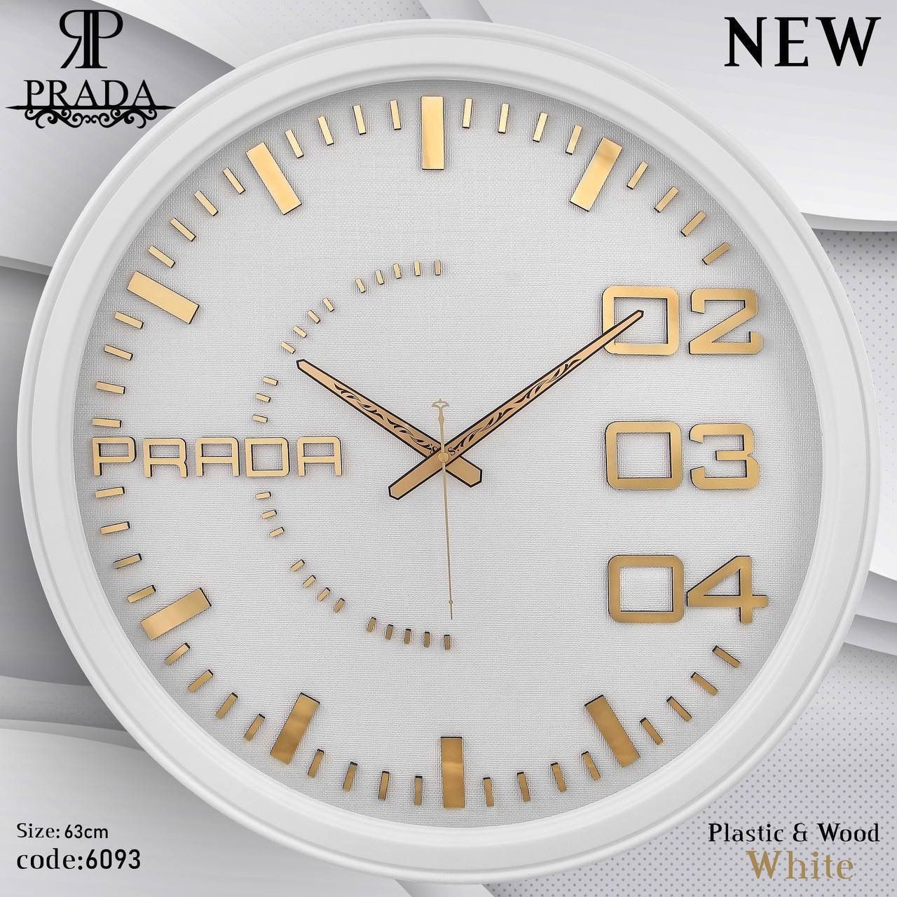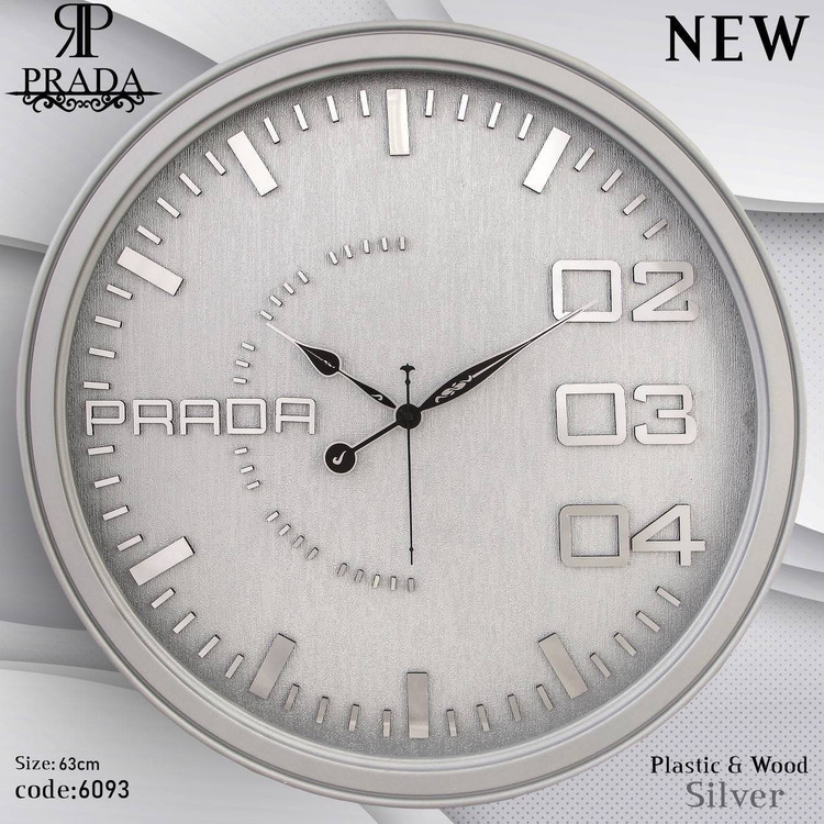 🕰️ ساعت دیواری پرادا (PRADA) مدل 6093 | طراحی مدرن با بدنه پلاستیکی و صفحه شاین اکلیلی